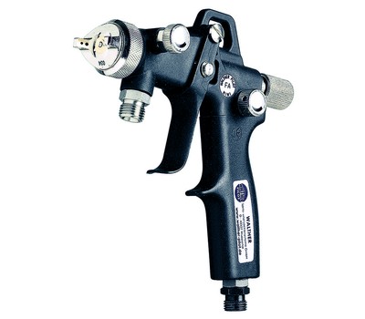 Pistola de pulverización ligera hecha de alta resistencia para piezas pequeñas y retoque de pintura y trabajos de decoración. Todas las partes son de acero inoxidable para poder procesar materiales base agua.